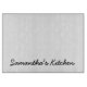 Personalisiertes Glasschneidenbrett mit kundenspezifischem Text, Namen oder Monogramm. Niedliche Geschenkidee für Küche oder Restaurant.