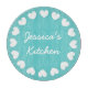 Personalisiertes Glasspanbrett | Türkisfarbene und weiße Herzen mit individuellem Text, Name oder Monogramm. Niedliche Geschenkidee für Küche oder Restaurant. Schönes Design für Frauen. Geschenkidee für Koch, Mutter, Ehefrau oder Freundin, die Liebe kochen.