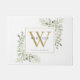 Elegante personalisierte Aquarell Blumengrün Monogramm Name Doormat mit einem Gold Monogramm Initial. Entwickelt von Thisisnotme©