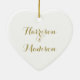 Personalisiertes Skript Couple Name Wedding Heart Keramik Ornament. Elegantes, klassisches, minimalistisches Design. Imitate, Goldtext, weißer Hintergrund