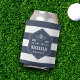Diese Marine und weiß gestreifte kann mit seinem Namen und einem besonderen Jahr (wie Geburtsjahr oder Rentenjahr) cooler werden, sodass er im 19. Loch wieder im Stil treten kann. Das Design im Golf-Design ist mit einem sechseckigen Logo versehen, das einen Golfball und gekreuzte Golfschläger trägt.