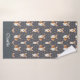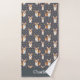 Dieses Corgi-Badetuch-Design ist komplett mit einem nahtlosen Muster aus süßen Corgis sowie einer grauen Hintergrundfarbe und einem Platz, um Ihren Namen hinzuzufügen.