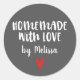 Ein personalisierter Aufkleber "hausgemacht mit Liebe" auf kohlegrauem Hintergrund. Machen Sie es Ihren, indem Sie Ihren eigenen Namen hinzufügen. Eine hübsche Touch für alle Ihre handgefertigten Geschenke. Entworfen für Sie von BlackBerry Boulevard.