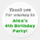 Danken Sie den Freunden für die Teilnahme des Geburtstags-Party Ihre Kinder mit einem kundengerechten Aufkleber, groß für Bevorzugungstaschen, Süßigkeit und Leckereien. Notizbuchpapierhintergrund mit handgeschriebenem Blicktext. Groß für danken Jungen oder das Mädchen-Party zum zu sagen Ihnen für das Kommen zu meinem Party zu den Gästen.