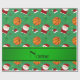 Modernes und trendy Sportbasketballmuster mit orange Basketball, Schnee, niedlicher Weihnachtsmann, Weihnachtsmannmützen, weiße rote Schneeflocken, grüne rote und gelbe Sterne, grüne Weihnachtsbäume mit grünem Hintergrund und mit dem grünen schwarzen Streifen, der mit gerade personalisiert ist, fügen Ihre Namensgeschenke oder Monogrammgeschenke oder Ihre Initialen für ein einzigartiges Geschenk hinzu. Sportgeschenkideen für Männer und Jungen und Mädchen. Ideal für Weihnachtsgeschenke.