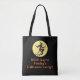 Niedliche und lustige personalisierte Halloween Hexenweih Bonbons Tasche. Geeignet für Ihren kleinen Trick oder Treater! Hexe, die auf einem Besenstiel vor Vollmond fliegt. Orangefarbener Zitat ist "Der Weg zum Halloween-Süßigkeiten (personalisierter Name)?" Schwarzer Hintergrund. Ideal für Trick, Behandlung oder Halloween-Partys!