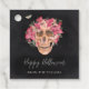 Ein sprichwörtlich schicker Halloween-Party mit einer Blumenschädel-Illustration und rosa orchiden Aquarellfarben-Blume auf einem rauchigen schwarzen Hintergrund. Personalisieren Sie das Programm mit zwei Zeilen benutzerdefiniertem Text.