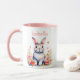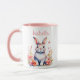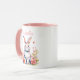 Ein niedliches Kaninchen, das in einem Stück hübscher, rosa Blume und Blätter im Wasser sitzt.