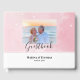 Das Design hat funkelnd Sterne gegenüber dem Baby-Rosa-Hintergrund und modernen kalligraphischen Texten, die nach Ihren Vorlieben angepasst werden können. Ersetzen Sie das Bild in der Mitte durch Ihr eigenes Foto. Es wird ein schönes Gästebuch für Ihre Hochzeitsgäste machen.