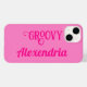 Das ist ein stilvolles, personalisiertes Design. Es ist in trendigem heißen Rosa und Retro Typografie. Es hat das Wort "Groovy" und Platz für Sie, um Ihren Namen hinzuzufügen. Es wäre ein ideales personalisiertes Geschenk oder als stilvolle, Vintage inspirierte Ergänzung zu Ihrem Telefonzubehör. Fügen Sie einfach Ihren Namen in das Textfeld ein, um eine persönliche Note zu erhalten. Hier können Sie auch das Wort groovy ändern, wenn Sie gewollt haben. Karo zum Anpassen des Designs aus dem Editor-Tool. Wenn Sie Hilfe bei Personalisierung, passenden Produkten oder für ein individuelles Design benötigen, kontaktieren Sie mich per zazzle Chat oder E-Mail: ursuladawnmoon@gmail.com