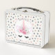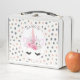 Hübsches, personalisiertes, weißes Aquarell mit Blumenmuster, zurück zur Schule Metall Lunchbox mit niedlichem Polka Dot Hintergrund. Fügen Sie Ihren Namen für ein magisches Einhornthema für Mädchen hinzu.