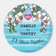 Sind Sie verheiratet geworden, Flitterwochen oder haben Sie am Strand oder auf einer Insel gelebt? Feiern Sie Ihren Hochzeitstag mit diesem personalisierten Anziehungspunkt am Meer! Schöne blaue Ozeanwellen erstrecken sich bis zum klaren Horizont der Küste hinter einem blühenden Rahmen von tropischen weißen Orchideen und Palmen Blätter. Die Namen des glücklichen Paares, das Hochzeitsjahr und die Anzahl der Jahre zusammen machen dieses einmalige Geschenk für die Liebhaber des Meeres.