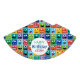 Personalisierten Kinder Monster Muster glücklich Geburtstag Party hinzufügen Alter Papier Hut. Frohes, buntes Monster-Gesicht mit ein und zwei Augen in einem bunten quadratischen Muster. Rote, orangefarbene, gelbe, grüne, blaue und lila Quadrate in einem wiederholten Muster. Geben Sie den Namen und das Alter in einen weißen Kreis. Fun Monster Party liefert.