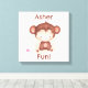 Mit dieser personalisierten Affenkunstkunst lassen Sie sich von der Freude und Verspieltheit verzaubern! Mit einer fröhlichen braunen Affen-Illustration und der Bestätigung "<name>is fun", ist diese Leinwand oder Poster perfekt für Kinderzimmer, Kinderzimmer oder Spielzimmer. Es ist ein Geschenk für Geburtstage, Babyduschen oder jeden besondere Anlass, das zum Lächeln und Positiv inspiriert wurde. Fügen Sie dem Kinderbereich mit diesem charmanten Kunstwerk eine lebendige und persönliche Touch hinzu!