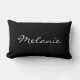 Setzen Sie Ihre Initialen auf unser mit Monogramm dekoratives Boudoir-Kissen. Sie sehen ein schwarzes Kissen mit weißer Schrift. Wir zeigen es mit dem Namen "Melanie". Dieses Kissen ist gewartet, mit dem Namen Ihrer Wahl personalisiert zu sein.