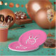 Teller zeigen eine originelle Illustration eines Hasenpaares. Lassen Sie sich einfach mit Ihrem Wunschtermin für eine lustige Babydusche persönlich verwöhnen!
