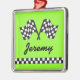 Der Spaß, der Flaggen läuft, entwerfen mit personalisiertem Namen kommt auf eine erstklassige silberne gerahmte Verzierung für den laufenden Enthusiasten! Ändern Sie einfach den Namen mit dem Entwurfswerkzeug, um eine kundenspezifische Rennen-Kundgebungsflaggen-Geschenkverzierung zu machen. Ändern Sie die Hintergrundfarbe auch, wenn Sie mögen. Für den Schmutz fahren Sie Racer, Auto auf lagerracer, Kundgebungsliebhaber rad.