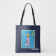 Eine personalisierte Tasche mit Wassersport. Navy Hintergrund. Ein blauer Rahmen mit einem gelben Rahmen oben. Ein rot gestreifter Leuchtturm und ein Beachball, mit einer lächelnden Sonne und fliegendem Seagull in der Entfernung positioniert innerhalb des Rahmens.