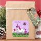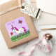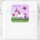 Personalisiertes Lila Einhorn, Blume und Schmetter Quadratischer Aufkleber