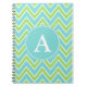 Ein Limones und türkisfarbenes Zickzack Muster schmückt dieses stilvolle Notizbuch. Personalisieren Sie dieses mit Monogramm Notizbuch, indem Sie den Monogrammbuchstaben ändern. Dieses Notizbuch ist ideal für Schulen, Reisen, Unternehmen, etc...Das Design stammt aus der Originalkunst.