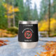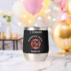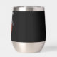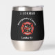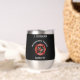 Stilvolle Reise Wein-Tumbler mit rot generischen Feuerwehr-Logo auf schwarzem Hintergrund. Passen Sie die Details der Stadt- oder Landkreis-Abteilung und den Namen des Feuerwehrmanns in weißem Schriftart an.