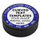 Individuell personalisierte Promotion Regulation Size Hockey Puck, mit WHITE anpassbarer, gekrümmter Textvorlage, die Ihr eigenes hochgeladenes Foto, Logo, Image umgibt, mit NAVY BLUE #00080 Hintergrundmaske hinter dem Text für eine vollständig optimierte Anpassung. Erstellen Sie Ihren eigenen, maßgeschneiderten Hockey-Puck mit personalisiertem Bogenschiff, rund, Textumschlag.
