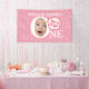 Ein süßes Banner für die erste Geburtstagsfeier Ihrer Tochter. Ein lustiges Personalisiertes Geburtstagsschild mit Comic-Wortballons und einfachen rosa Blume. Sie können ein lustiges Original-Baby-Bib erstellen, indem Sie einfach Ihr Baby-Foto durch ein Beispiel ersetzen. Es ist nicht notwendig, das Foto in einen Kreis zu schneiden. Du hast auch lustigen Witz in die Sprechblase eines Babys gelegt! Lass's machen ein besonderes Baby's 1. Geburtstag Party mit Ihren originellen Ideen! Es ist perfekt für ein Baby-Geburtstagsbanner und wird Ihre Familie und Freunde begeistern. Bitte schicken Sie mir eine Nachricht mit Fragen oder Wünschen. Einfache Typografie, lustige Fotos, modernes Design, stilvolle Idee, Kawaii, schönes Rosa, niedliche Blume, Geburtstagsbanner.