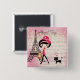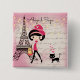 Dieses wunderschöne Knopfdesign besticht durch das niedlichste Mädchen und die Katze vor dem Eiffelturm mit hübschen Saitenleuchten vor einem rosa, mit einem Knopfdruck versehenen Hintergrund. Personalisieren Sie mit einem Namen!