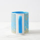Auf dieser stilvollen Tasse ist eine goldene verzierte Mandala auf einem blauen türkisfarbenen Hintergrund mit goldenen Sternen, die absinken, wo am unteren Ende der Tasse goldglänzende goldfarbene Glattleder für extra Glanz. Mystische verzaubernde Vibes. Kann im passenden blauen türkisfarbenen Kreis mit einem Namensbuchstaben oder Logo personalisiert werden, um es zu Ihrem eigenen zu machen.