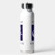 Personalisierte Meerjungfrau Beach House Wasserflasche. Mermaid-Illustration mit zeitgenössischem Blocktext oben und unten. Blau und weiß.