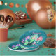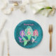 Personalisierte -Papiere-Teller mit drei Mermaids mit langen lila, aquamarinen und warmen rosa Haaren in einem Hintergrund von mermaid aquamarinen Dekoration. Mit der Möglichkeit, Text behalten oder zu löschen "gesegnet" "Mermaid Sarah" in rosa. Design © durch Nayda Liz Rivera
