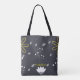Personalisiert Moderne Floral Black and Yellow Tote Bag Dieses elegante Totbeutel mit gelben und weißen Wildblumen auf schwarzem Hintergrund ist mit Ihrem individuelle Name unten in modernen gelben Schriftzeichen versehen. Leicht zu personalisieren für Ihren Junggeselinnen-Abschied, Nachts oder Mädchenwochenende!