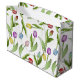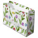 Das Produktdesign zeichnet sich durch farbenfrohe Tulpenmuster in lila, roten, rosa, blauen und gelben Blume aus. Diese botanische Illustration mit personalisiertem Text macht eine elegante, moderne und einzigartige Geschenktasche für Geburtstag, Ostern, Muttertag, Brautparty, Hochzeit und vieles mehr!