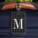 Personalisiertes Monogramm-Kammermuster Reisegepäck-Tag. Chic Initialed Design mit Art Deko Fischskala Muster. Scalloped print mit Großbuchstaben. Stilvolles Geschenk für reisende Männer und Frauen. Schwarz-Weiß-Farbe oder anpassen. Luxuriöses typografisches Design. Luxuriöses Gepäcklabel für luxuriöse Gepäckstücke und Koffer.