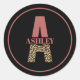 Personalisiertes Monogramm A Pink Leopard Runder Aufkleber
