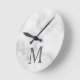 Personalisiertes Monogramm aus weißem Marmor und N Runde Wanduhr