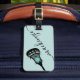 Personalisiertes Aquamarines Blue Turquoise Lacrosse Gepäcksack Tag mit einem einfachen niedlichen Lacrosse Stick Grafik und individuelle Name oder Text in einem femininen gurt und moderne hübsche Schriftart Monogramm. Jegliches Lacrosse Team- oder Clubmitglied Liebe den Spaß und die niedliche Gestaltung dieses Lacrosse Themes, das es seinen Taschen ermöglicht, sich für Reisen und Wettkämpfe zu profilieren.