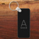 Moderne, elegante und schlichte Maskuline Monogramm Initial und individuelle Name auf einem rechteckigen Schlüsselanhänger aus Metall in einem klassischen, beruflich aussehenden Sans-Serif-Schriftart für einen einfachen und beruflichen und modernen Schwarz/Weiß/Grau-Stil.
