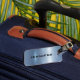 Entwerfen Sie ein einzigartiges Gepäckanhänger mit Ihrem Namen und Kontaktinformationen auf einem glänzenden metallisch blauen Hintergrund. Stell dich von der Menge ab und mache eine Aussage mit deinem personalisierten Tag.