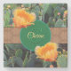 Zeigen Sie Ihre Liebe von allem Südwesten mit diesem wunderschönen, hellorangefarbenen, stachelbraunen Kakteen Blume Foto-Design mit einer dunkelgrünen Text-Box auf einem Streifen eines Stammes-Look-Muster in tan gedruckt auf einem Untersetzer Stein. Passen Sie dies an mit Zazzles vielfältigen Schriftart-Stilen und Farbvarianten. Sie können dieses Design auch auf ein anderes Produkt übertragen, wenn Sie es bevorzugen. Bitte zögern Sie nicht, mich zu kontaktieren, wenn Sie Hilfe benötigen, und ich werde Ihnen gerne behilflich sein. Sie können mich unter KarenCoffelt@wolfmoonartanddesign.com erreichen. Dieses Foto wurde im Boyce Thompson Arboretum in Superior, Arizona, aufgenommen. Original Fotografie Copyright 2016 und Original-Design Urheberrecht 2018 von Karen Coffelt.