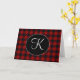 Single Script Monogram Red and Black Buffalo Karierte Grußkarte