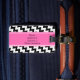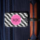 Mit Monogramm Schwarz-Weiß-Zickzack-Muster. Ein heiß rosa Kreis, in dem Sie Ihre Initialen hinzufügen können, und auf der anderen Seite ein heißrosa Rechteck, mit dem Sie Ihre Informationen hinzufügen können.