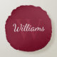 Personalisiertes Monogramm und Name Burgundy Red Rundes Kissen