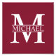 Personalisierte Monogramm- und Namensgeschenke mit personalisiertem weißem Monogramm im klassischen Serif-Schriftart-Stil mit Namensbox in der Mitte des Monogramms auf bordeauxrotem Hintergrund. Perfekt als Wohngestaltungen, Hauswärme Geschenke, Feriengeschenke für Familien, Neuvermählte und mehr.