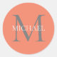 Personalisiertes Monogramm und Name Light Pink Runder Aufkleber