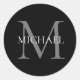 Personalisiertes Monogramm und Name Schwarz Runder Aufkleber