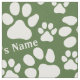 Entzückendes kundenspezifisches personalisiertes Gewebe für Ihren Haustierhund oder irgendein Tier mit den Tatzen für diese Angelegenheit. Eine Reihe pawprints nach dem Zufall ungefähr zerstreut, mit dem Namen Ihrer pelzartigen vier-mit Beinen versehenen Freundgewohnheit gänzlich gedruckt. Waldgrün- und weißermittleres Mittel- Musterdruck ist für diy Handwerk und die Herstellung der Hündchenbetten, Welpenkissen, Haustier Hankies groß, oder was auch immer Sie wollen!