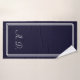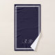 Elegantes und modernes personalisiert marineblaues Handtuch mit Initialen. Verwenden Sie die Entwurfswerkzeuge, um Text und Schriftart zu ändern. Gut als Geburtstag- oder Urlaubsgeschenk.