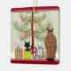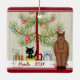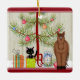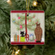 Dieses Weihnachtsbaumschmuck mit einem niedlichen braunen Pferd und einem schwarzen Kätzchen, stehend unter einem Weihnachtsbaum mit festlichen Geschenken. Die Rückseite kann mit einem Namen und einem Jahr oder einem Text, den Sie hinzufügen möchten, personalisiert werden. Einige Grafiken von Trina Clark unter DigiScrapKits.com