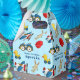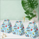 Frische und farbenfrohe Kindergeburtstag-Party-Fvor-Box mit einem niedlichen Kinderspielmuster inklusive Ente, Auto, Flugzeug, gestopftes Tier-Hase und Ballon auf texturiertem hellblauen Hintergrund. Personalisiert mit Kindernamen.